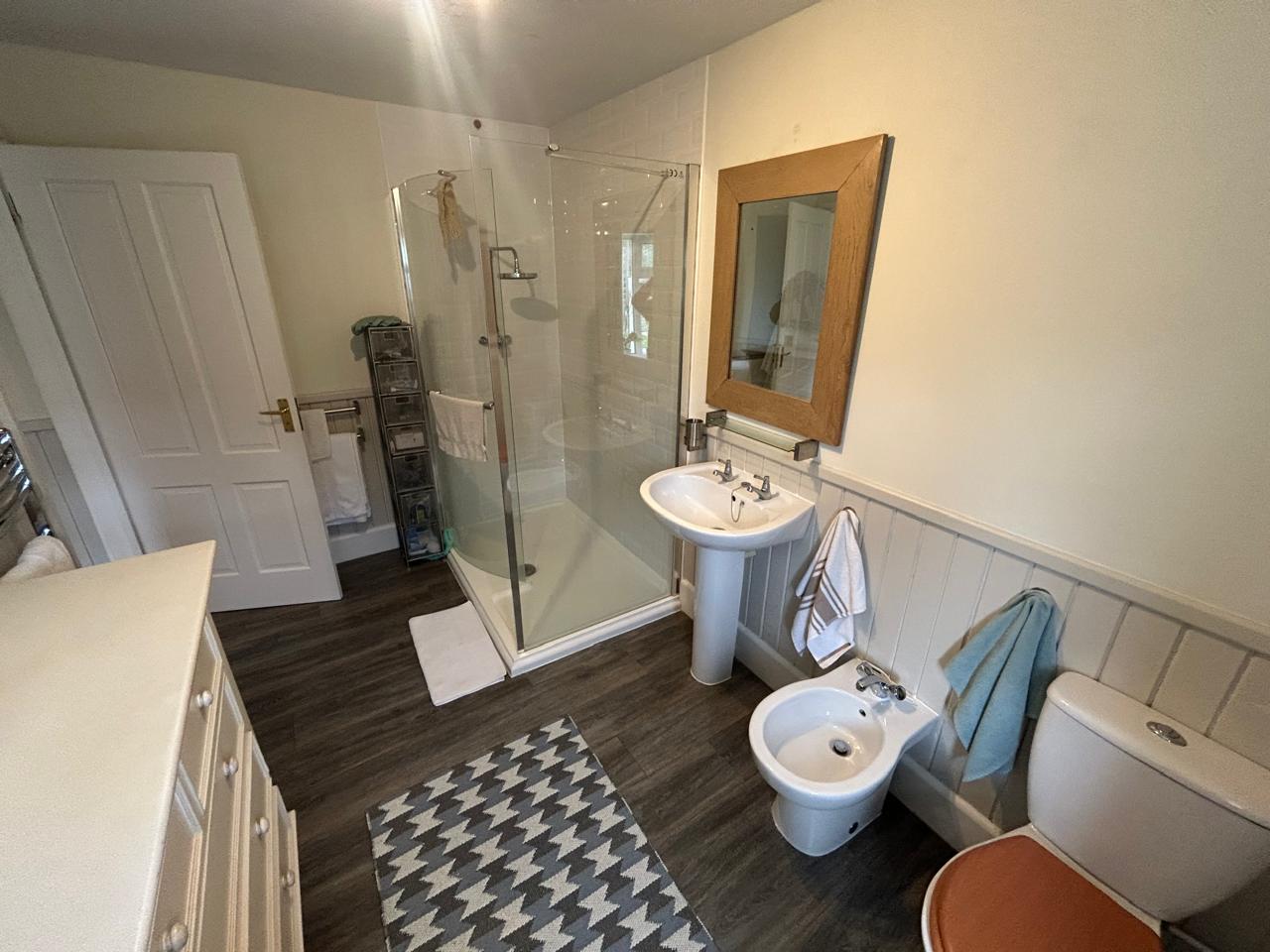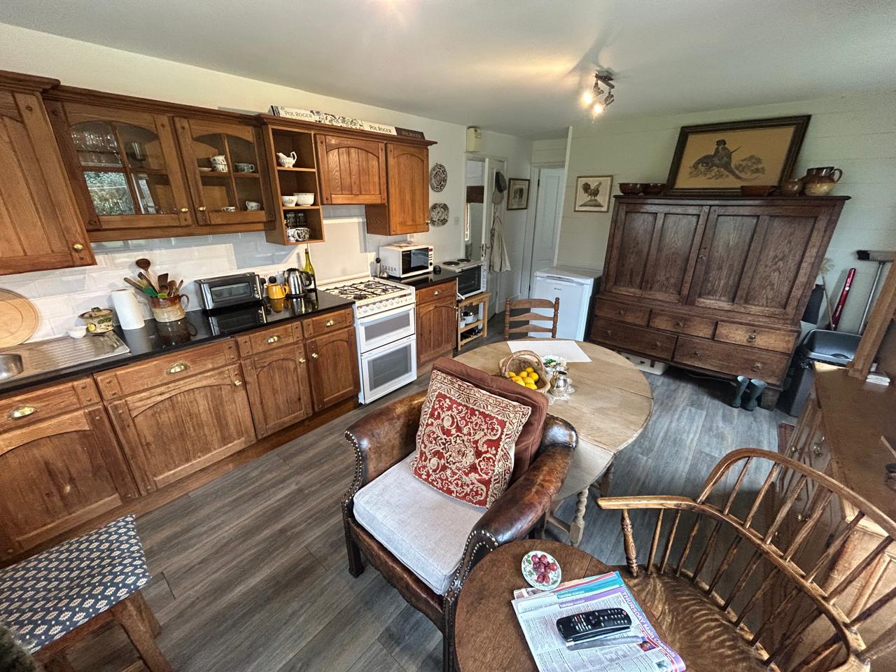 The accommodation is both spacious and versatile, featuring a temporary kitchen and generous open plan lounge/dining room, as well as a separate annexe with bedroom, en-suite, and kitchen/diner. With four well-proportioned bedrooms in total, including a principal bedroom with en-suite, the home also benefits from a family bathroom and an additional cloakroom, ideal for guests.
